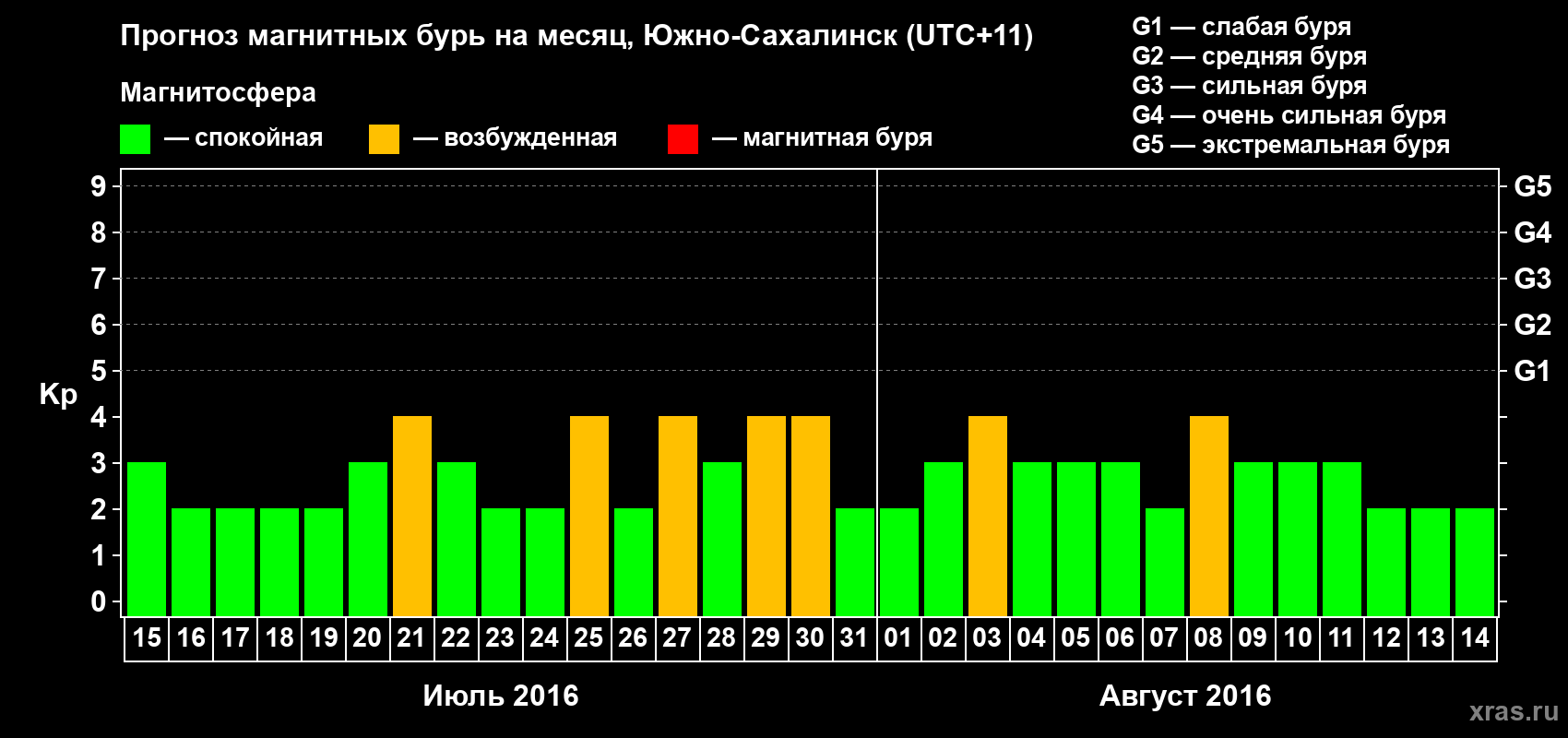 Прогноз магнитных бурь в Южно-Сахалинске — 15 июля 2016 года