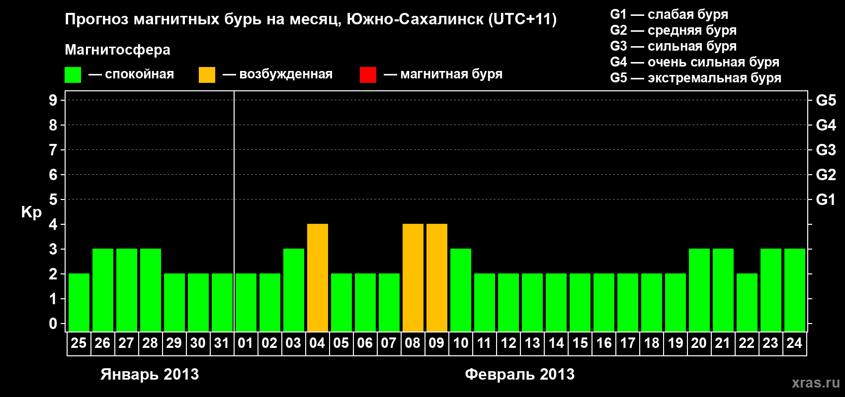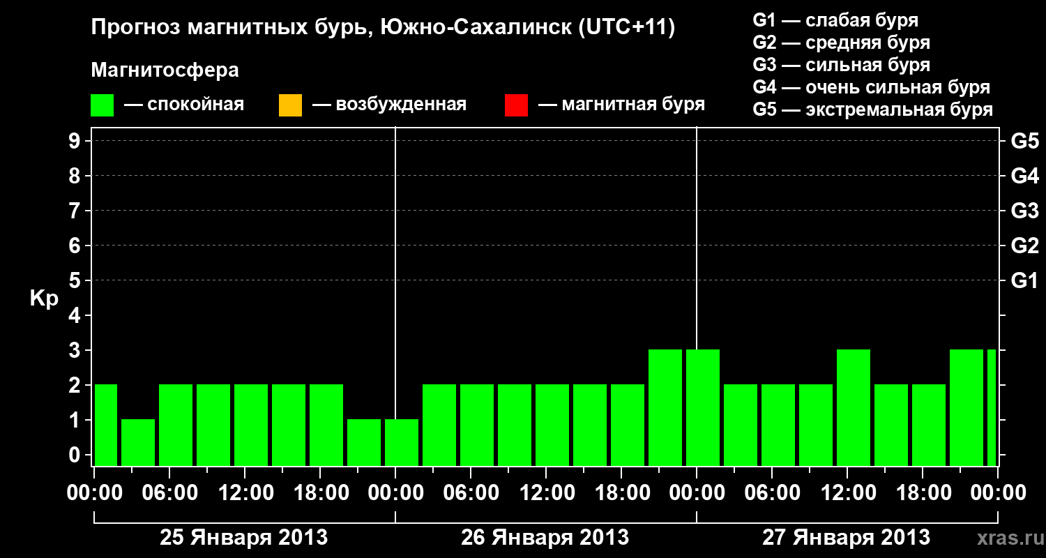 Прогноз магнитных бурь в Южно-Сахалинске — 25 января 2013 года