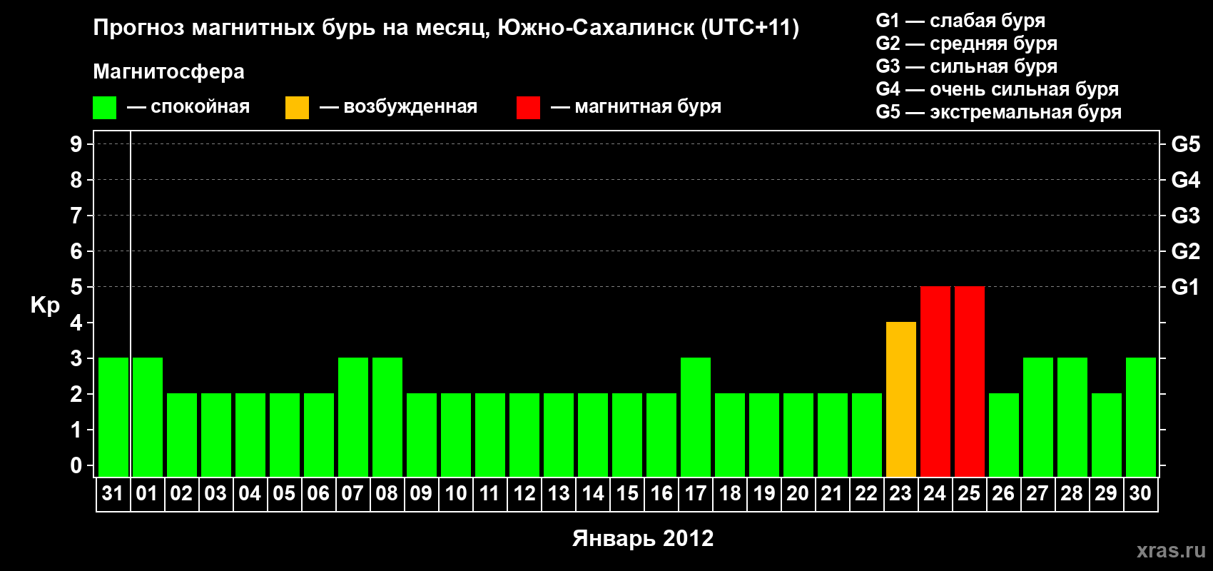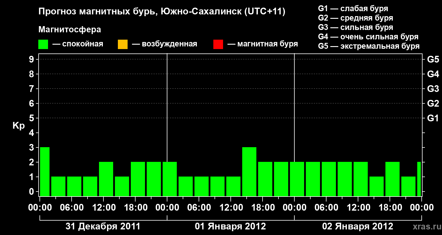 Прогноз магнитных бурь в Южно-Сахалинске — 31 декабря 2011 года
