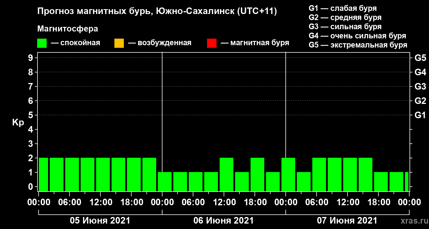 Прогноз магнитных бурь в Южно-Сахалинске — 5 июня 2021 года