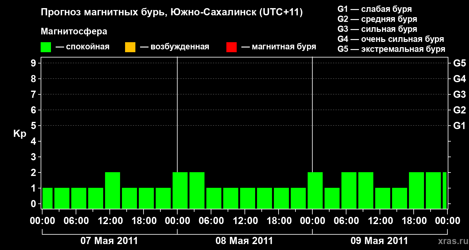 Прогноз магнитных бурь в Южно-Сахалинске — 7 мая 2011 года