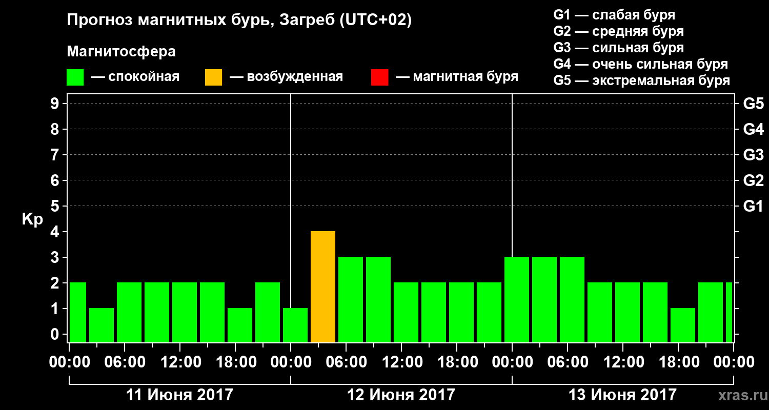 Прогноз магнитных бурь в Загребе — 11 июня 2017 года