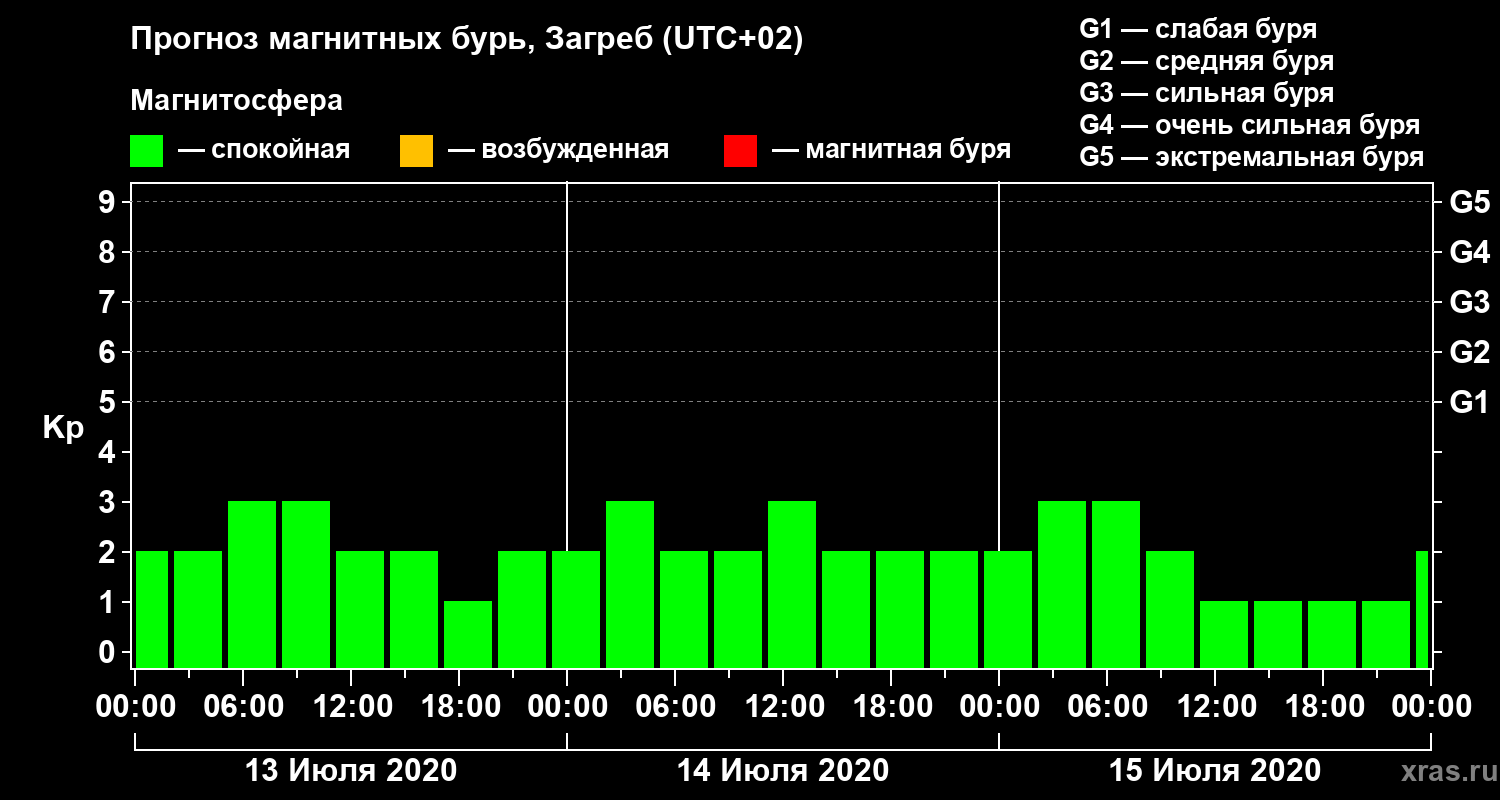 Прогноз магнитных бурь в Загребе — 13 июля 2020 года