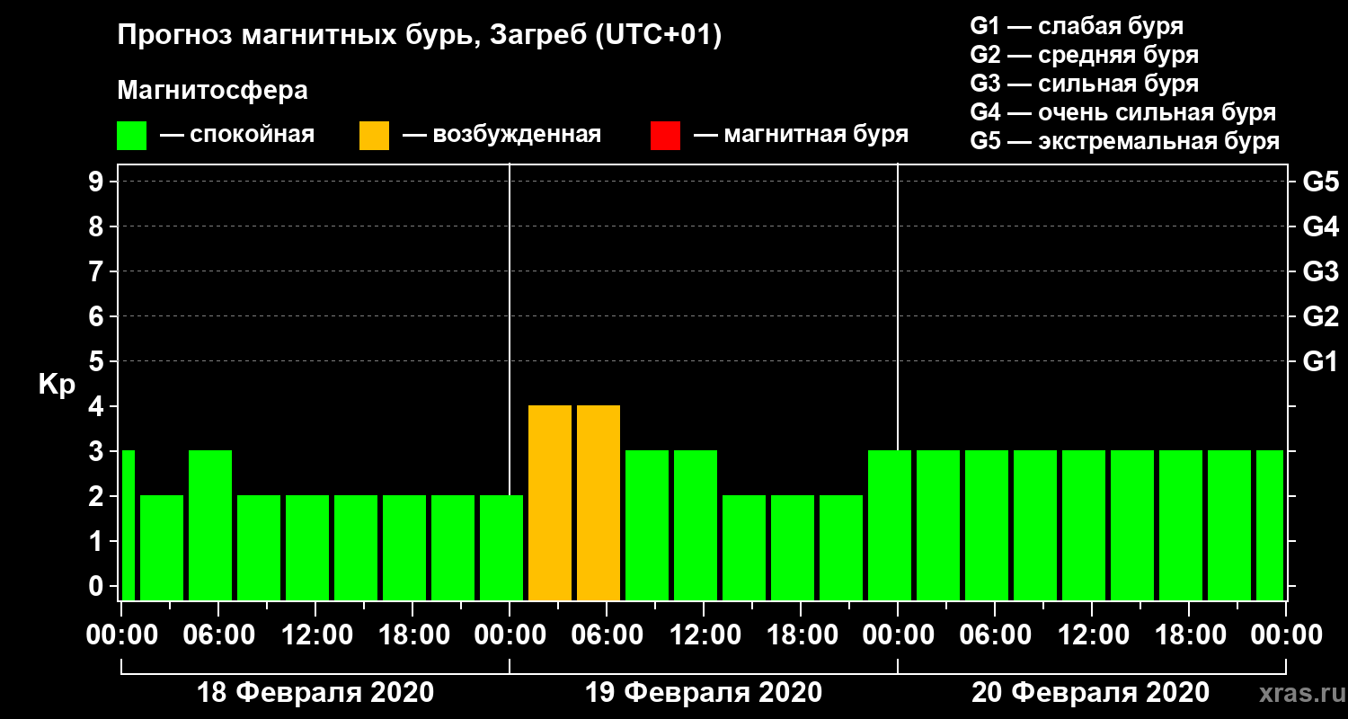 Прогноз магнитных бурь в Загребе — 18 февраля 2020 года