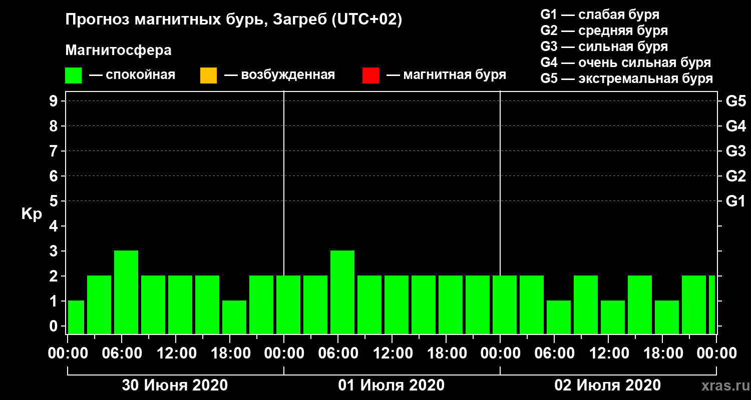 Прогноз магнитных бурь в Загребе — 30 июня 2020 года