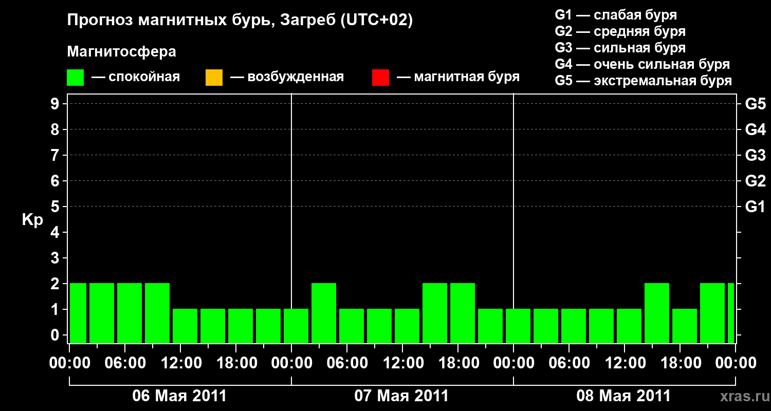 Прогноз магнитных бурь в Загребе — 6 мая 2011 года
