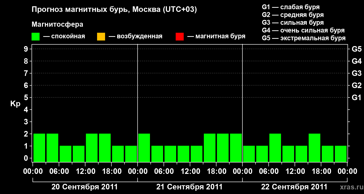 Прогноз магнитных бурь в Москве на 20 сентября 2011 года