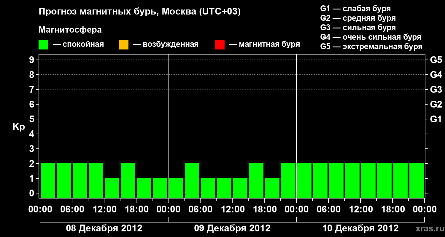Прогноз магнитных бурь в Москве на 8 декабря 2012 года