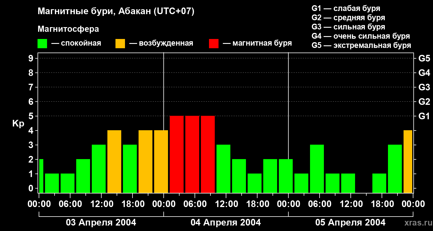 Магнитные бури в Абакане — 5 апреля 2004 года