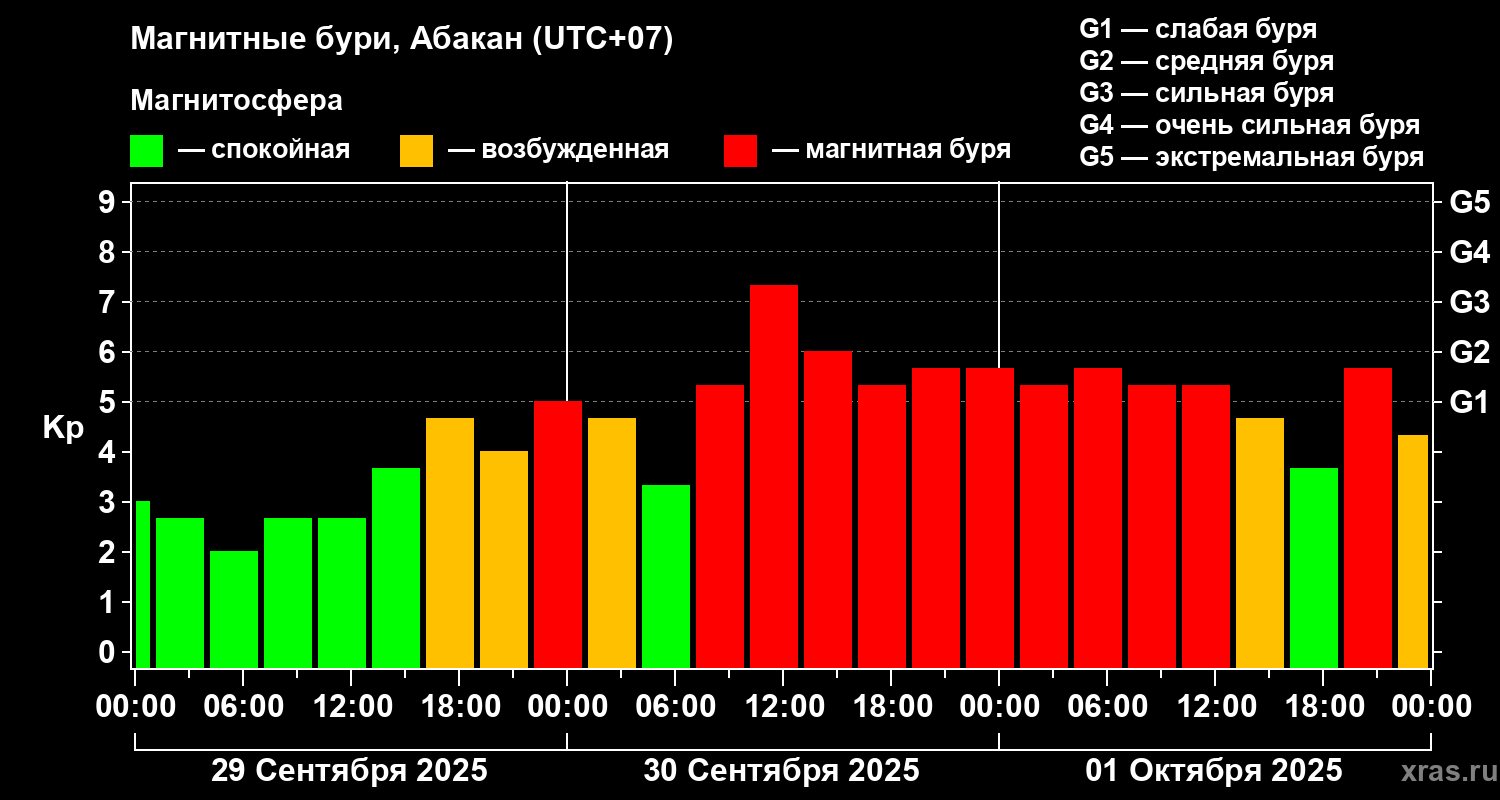 Магнитные бури в Абакане — 1 октября 2025 года