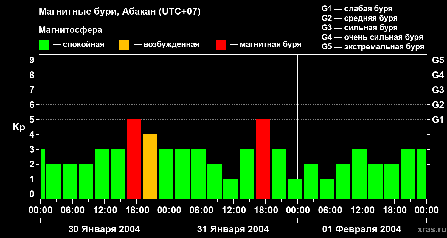 Магнитные бури в Абакане — 1 февраля 2004 года
