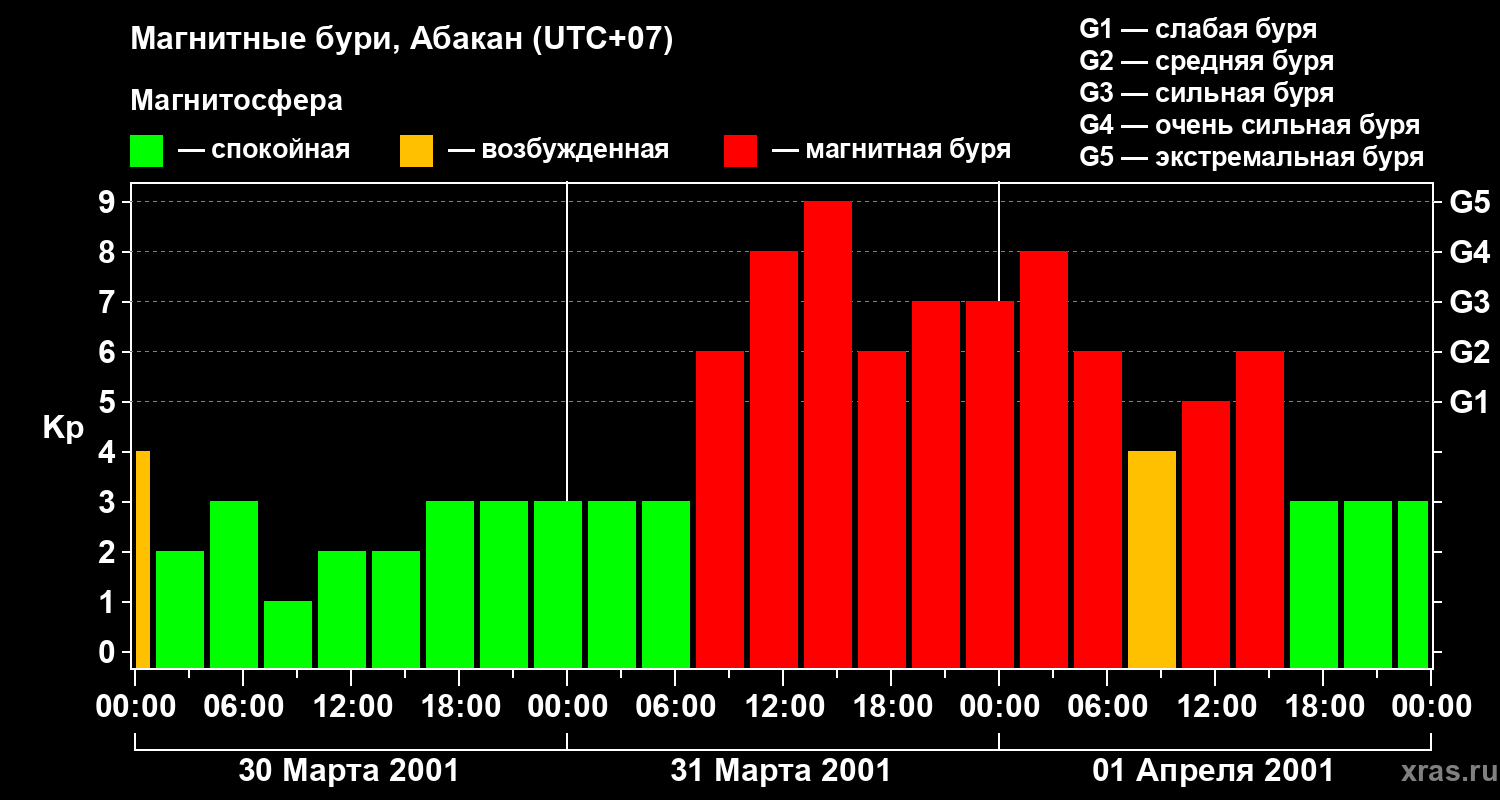 Магнитные бури в Абакане — 1 апреля 2001 года