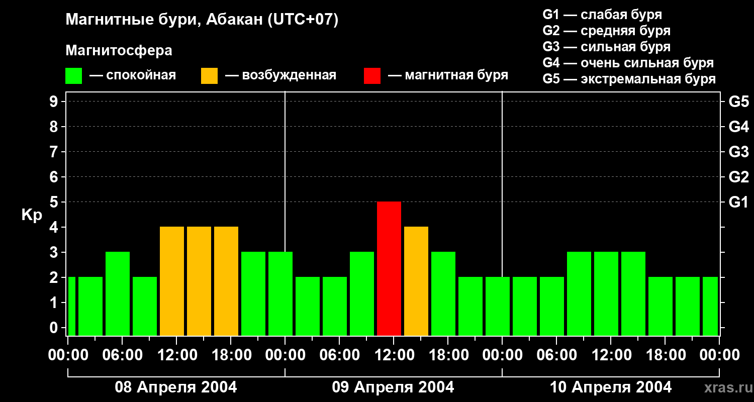 Магнитные бури в Абакане — 10 апреля 2004 года