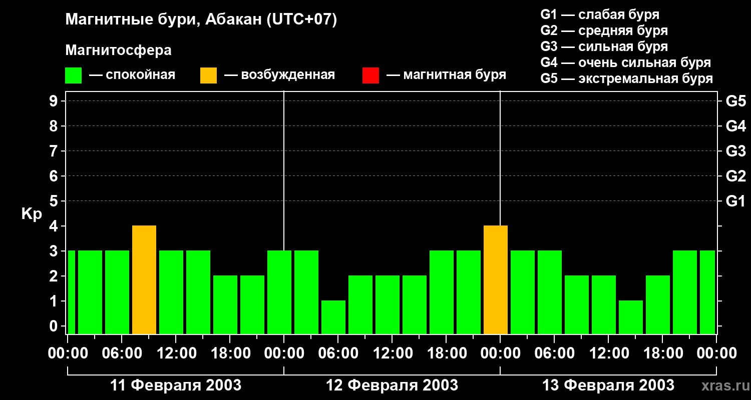 Магнитные бури в Абакане — 13 февраля 2003 года