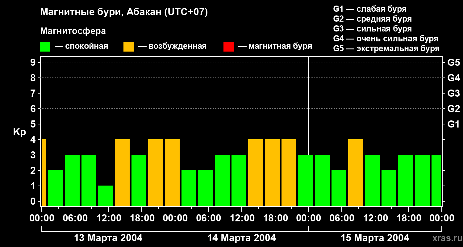 Магнитные бури в Абакане — 15 марта 2004 года