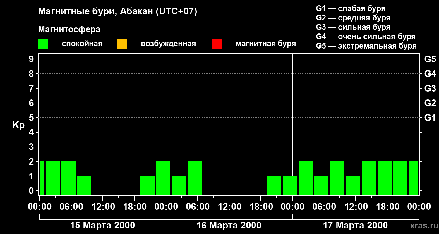 магнитосфера Земли была спокойной (Kp = 2.00)
