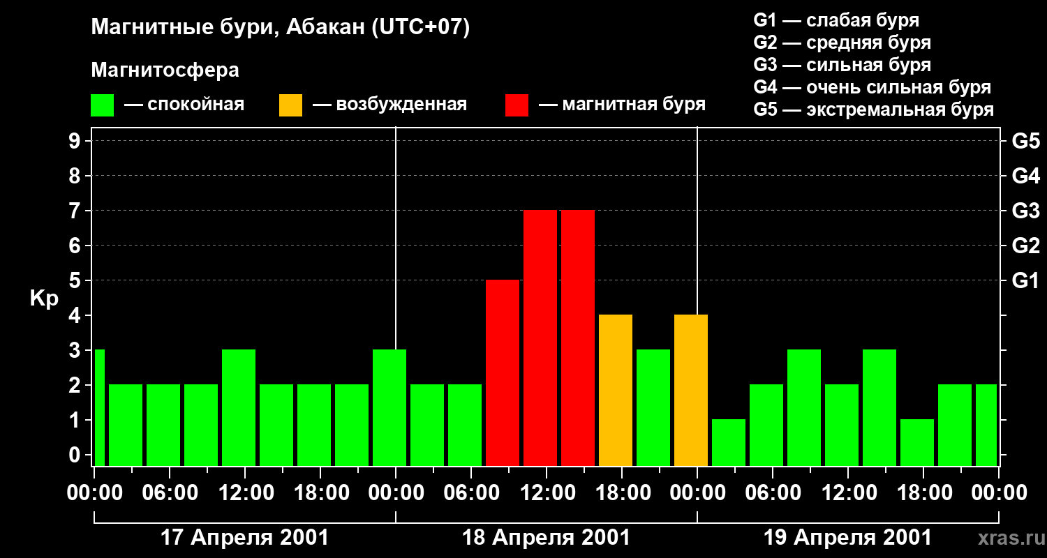 Магнитные бури в Абакане — 19 апреля 2001 года