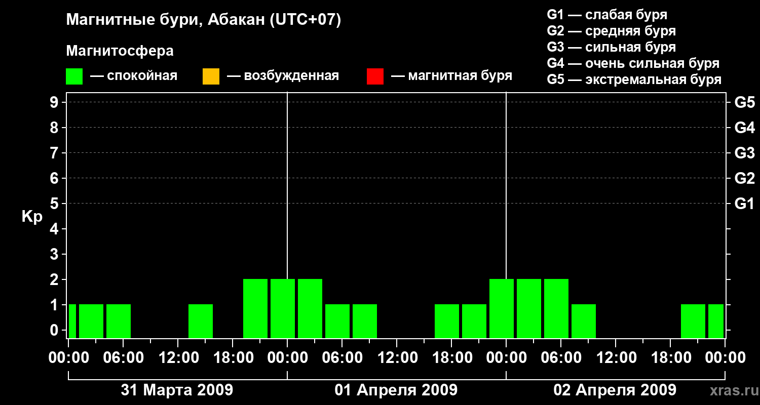 Магнитные бури в Абакане — 2 апреля 2009 года