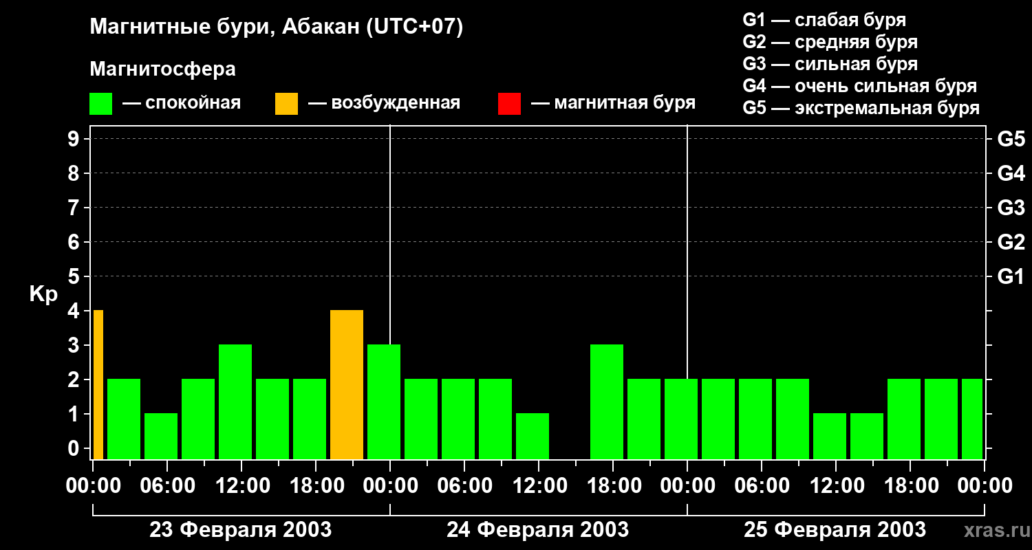 Магнитные бури в Абакане — 25 февраля 2003 года