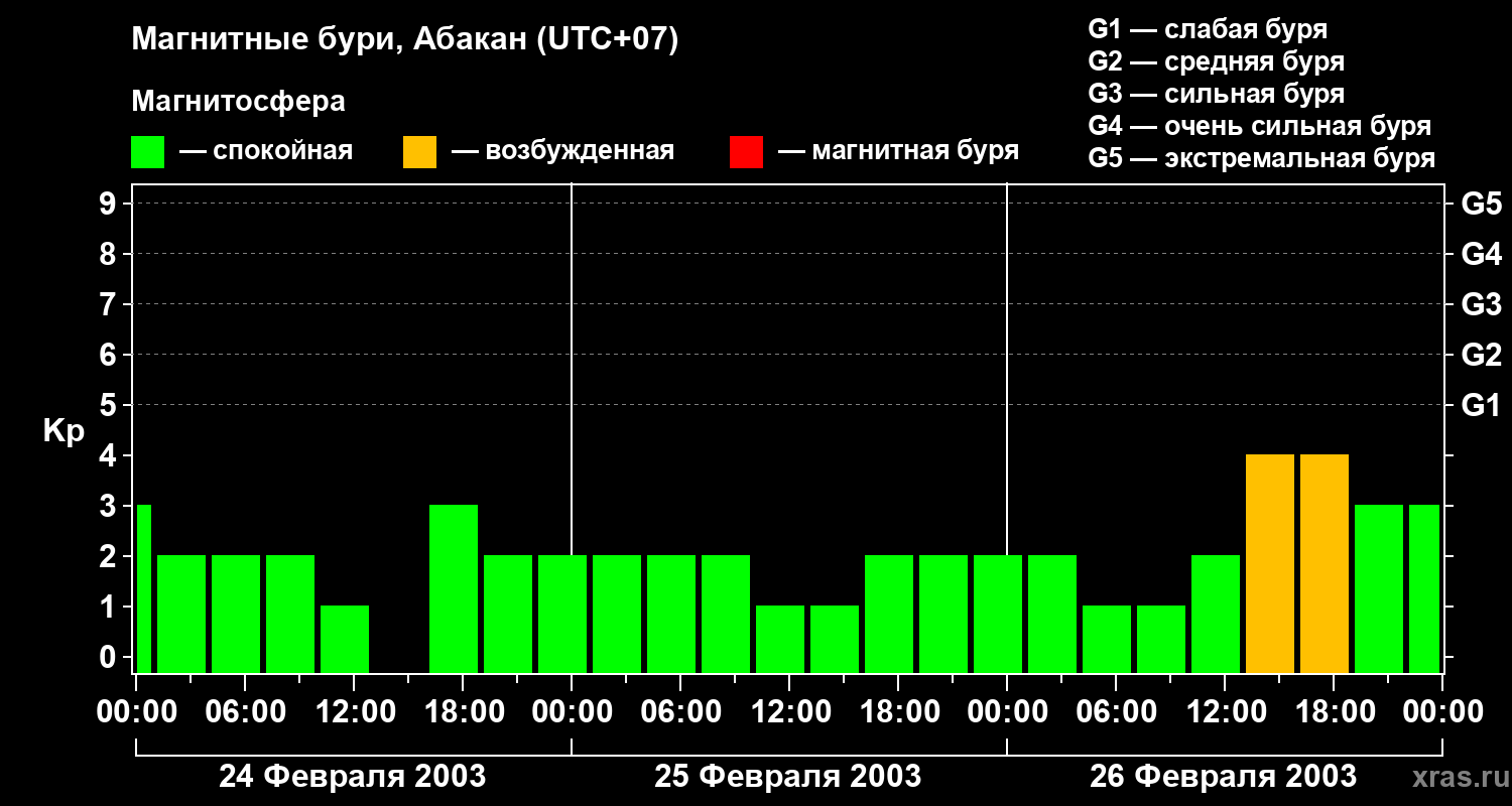 Магнитные бури в Абакане — 26 февраля 2003 года