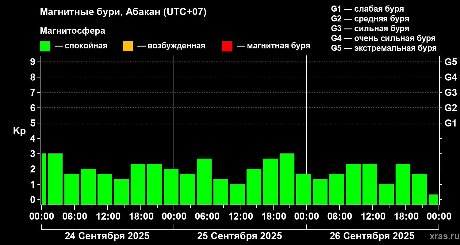 Магнитные бури в Абакане — 26 сентября 2025 года