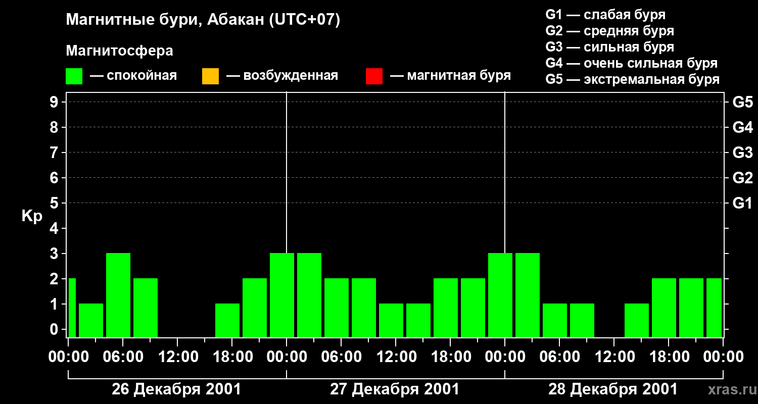 Магнитные бури в Абакане — 28 декабря 2001 года