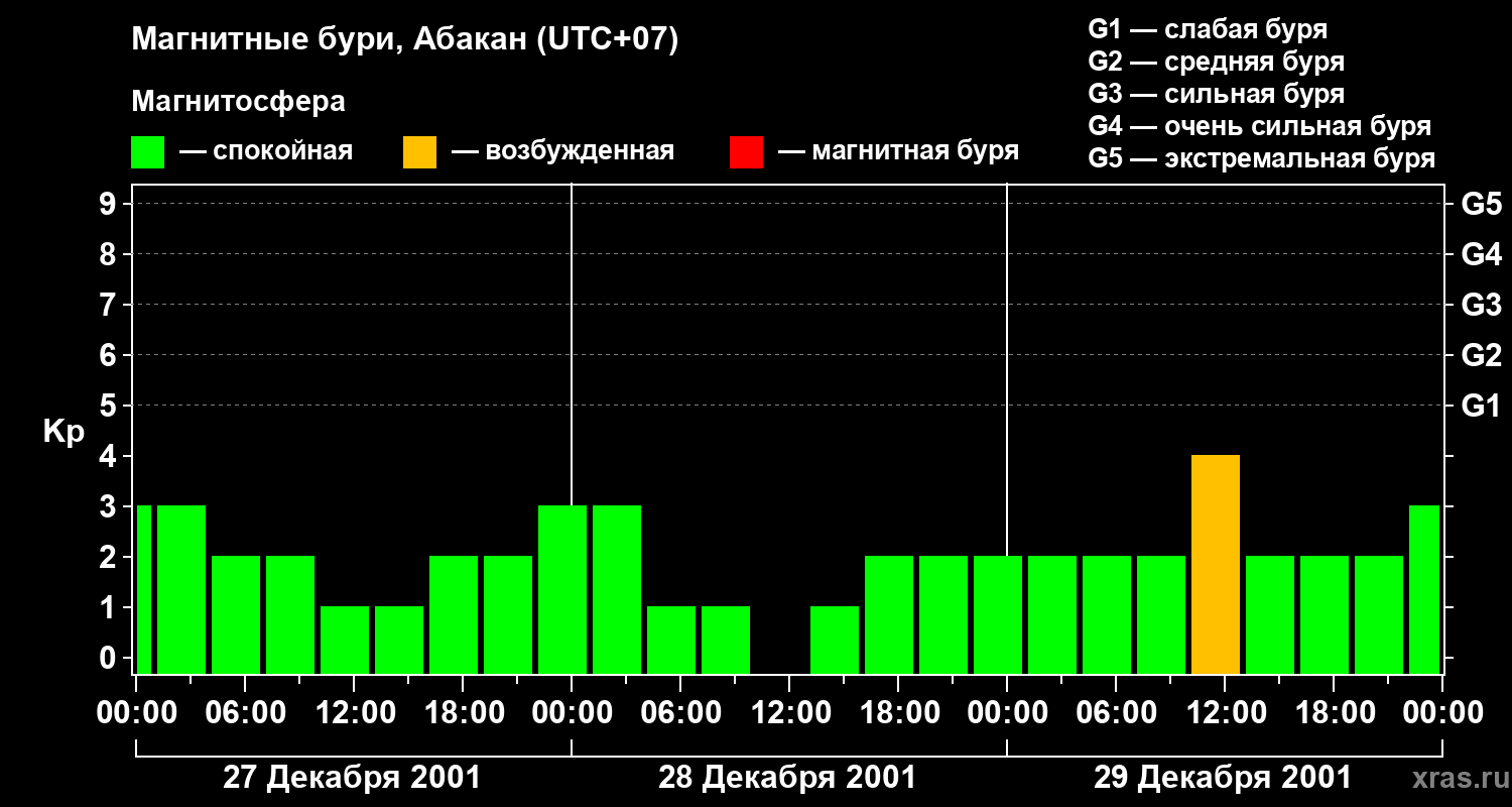 Магнитные бури в Абакане — 29 декабря 2001 года