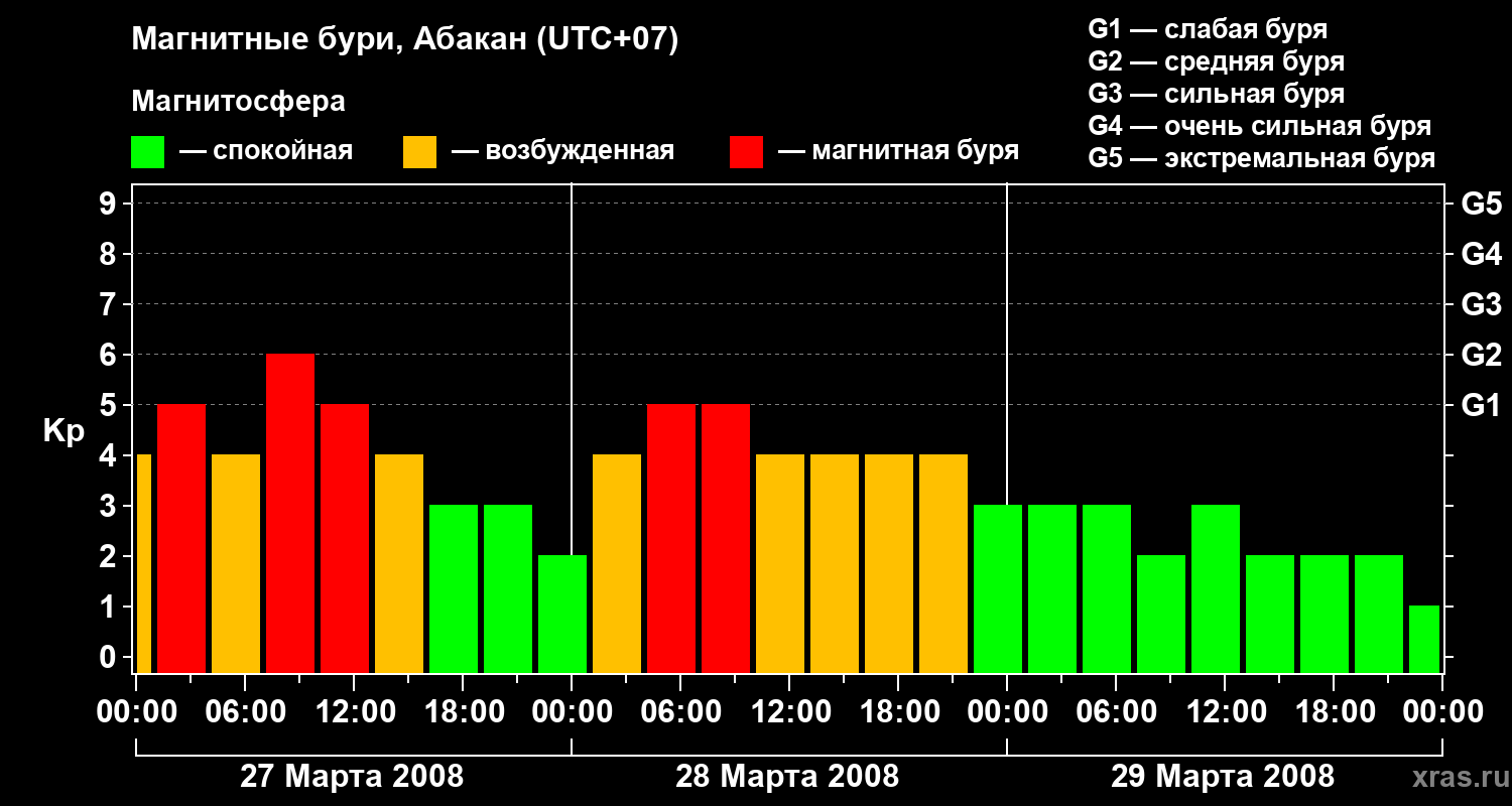 Магнитные бури в Абакане — 29 марта 2008 года