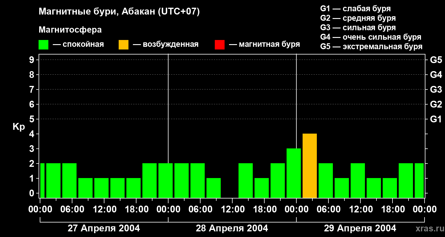 Магнитные бури в Абакане — 29 апреля 2004 года