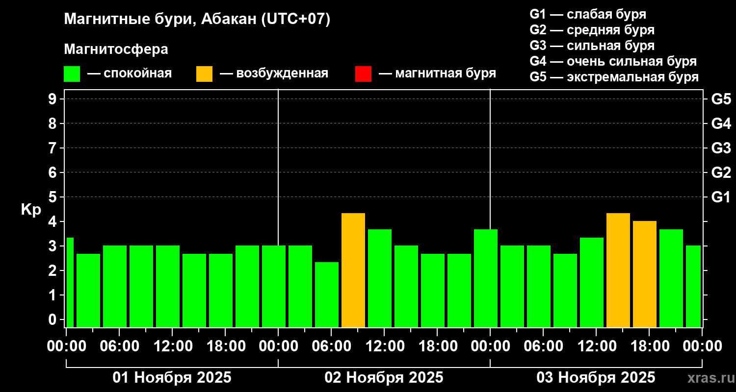 Магнитные бури в Абакане — 3 ноября 2025 года