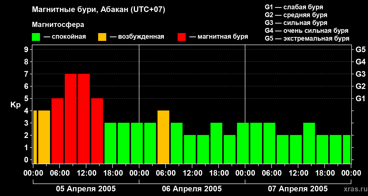 Магнитные бури в Абакане — 7 апреля 2005 года