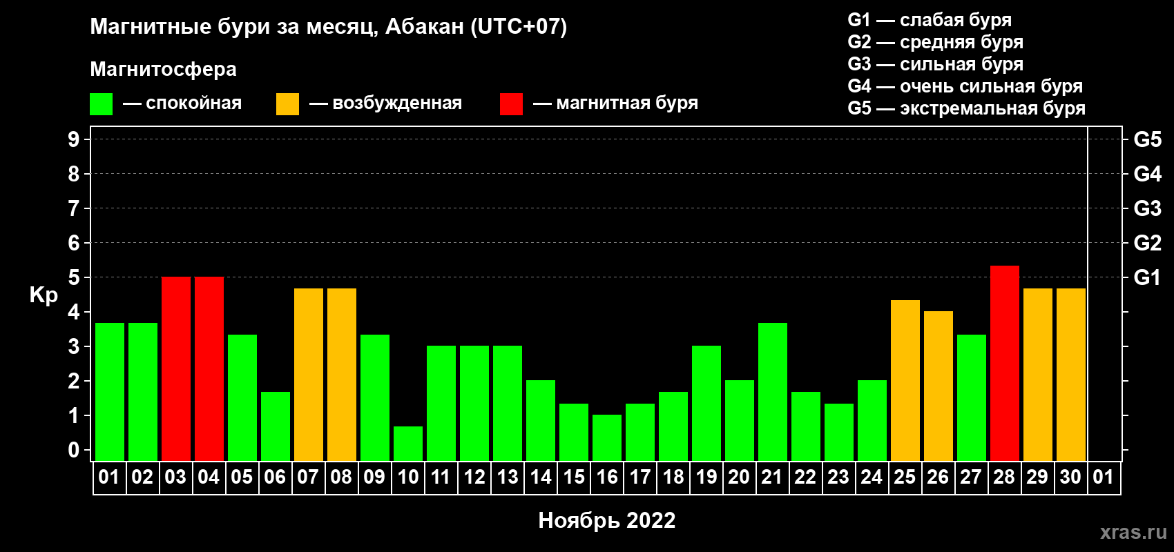 Список магнитных бурь в ноябре 2022 года