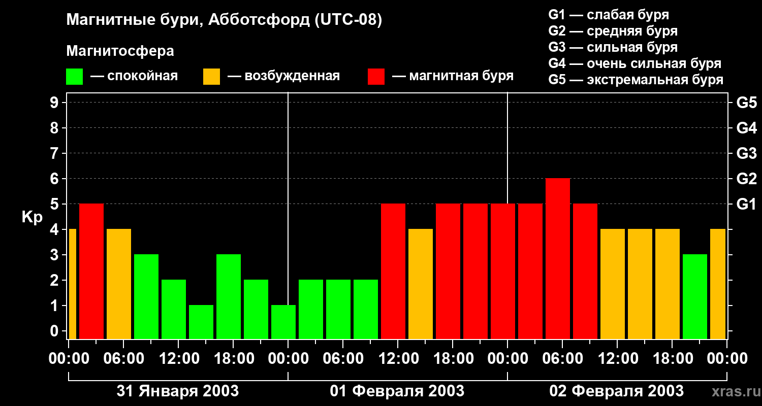 Магнитные бури в Абботсфорде — 2 февраля 2003 года
