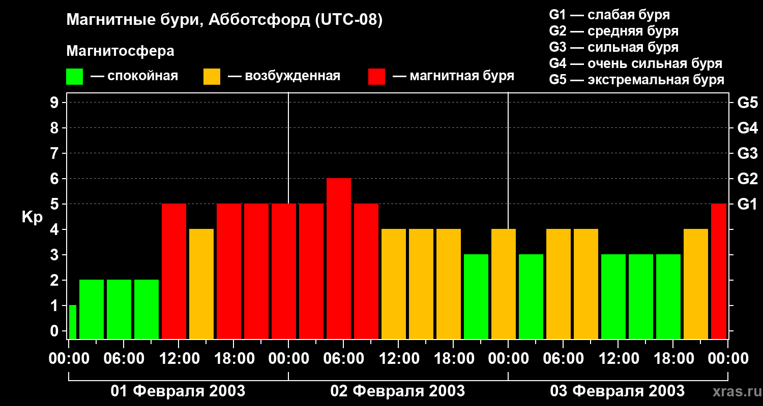 Магнитные бури в Абботсфорде 3 февраля 2003 года