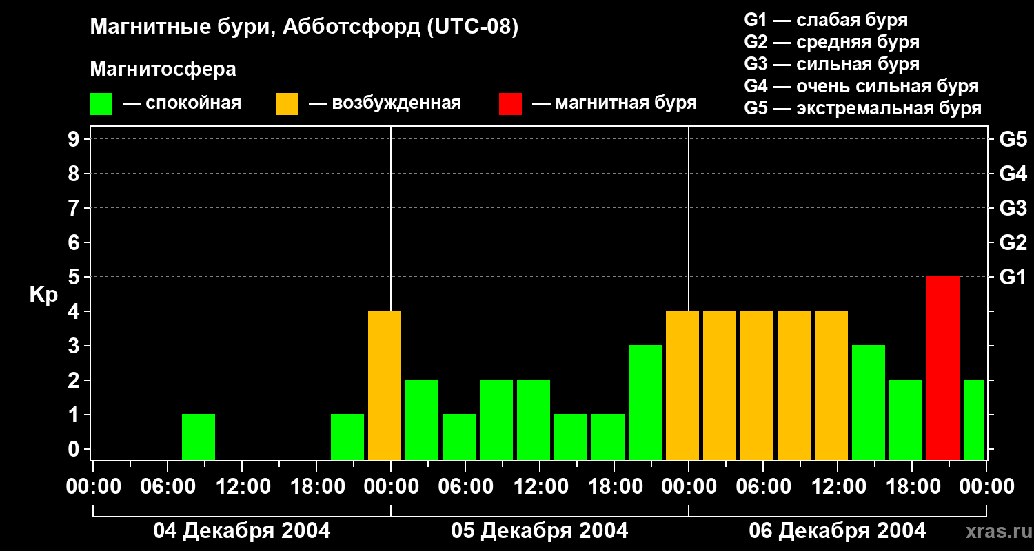 Магнитные бури в Абботсфорде 6 декабря 2004 года