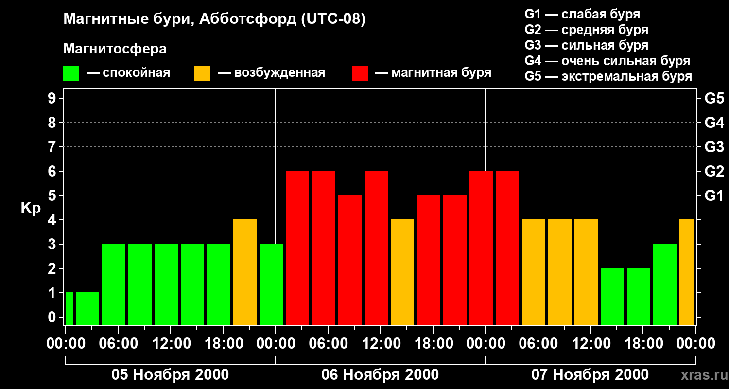 Магнитные бури в Абботсфорде 7 ноября 2000 года