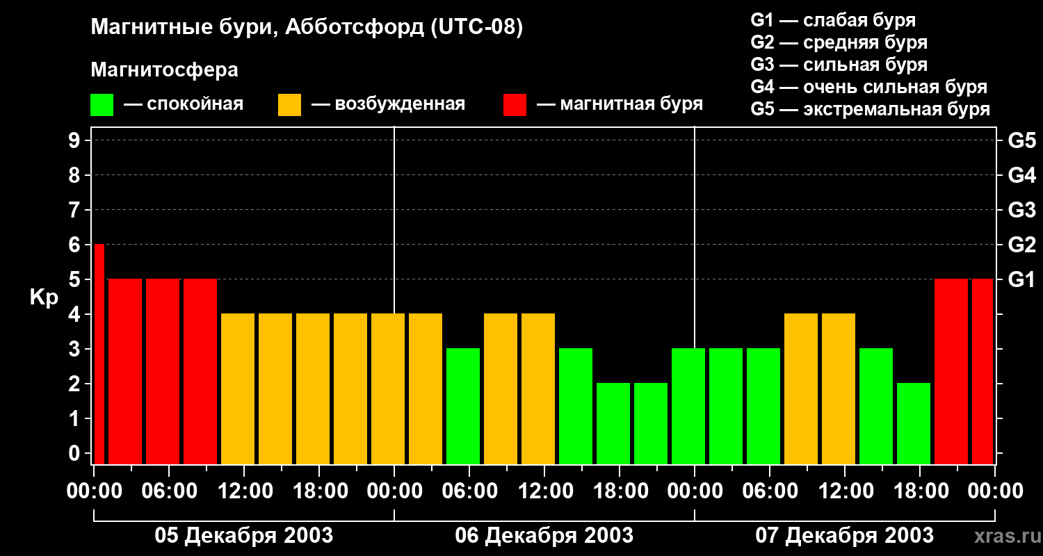 Магнитные бури в Абботсфорде — 7 декабря 2003 года
