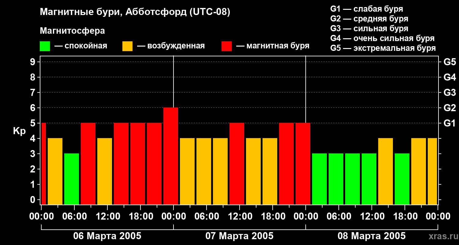 Магнитные бури в Абботсфорде 8 марта 2005 года