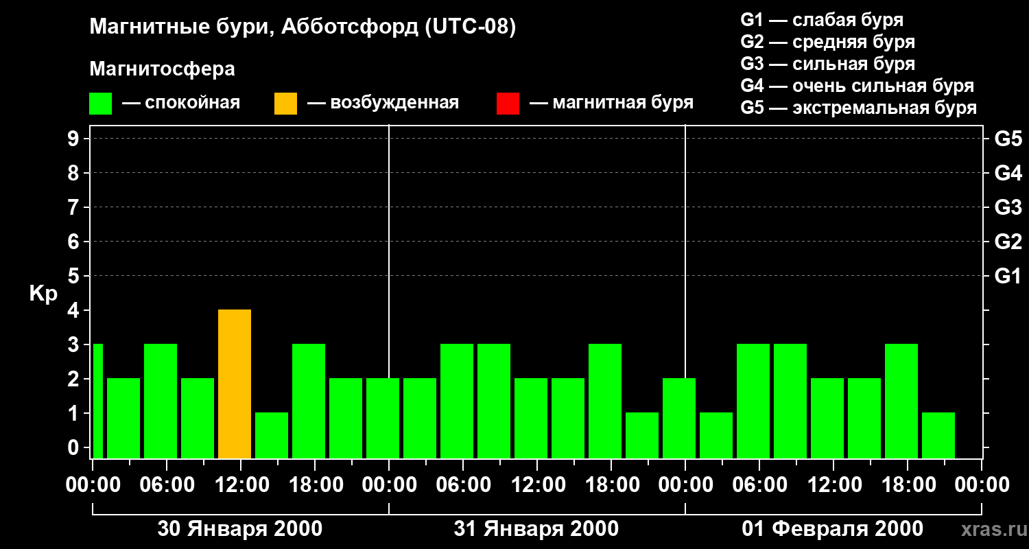 Магнитные бури в Абботсфорде 1 февраля 2000 года