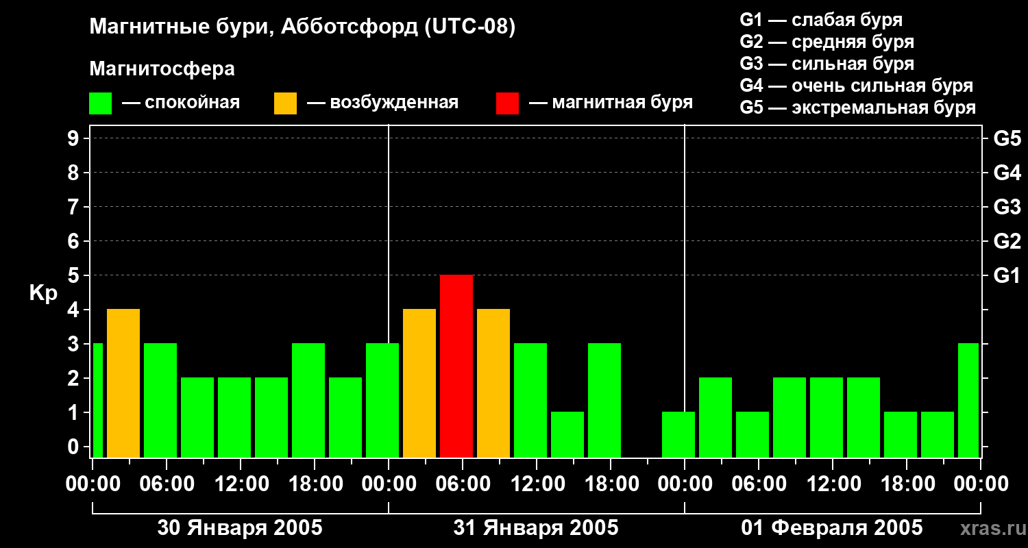 Магнитные бури в Абботсфорде 1 февраля 2005 года
