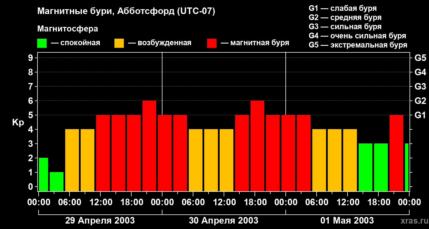 Магнитные бури в Абботсфорде 1 мая 2003 года