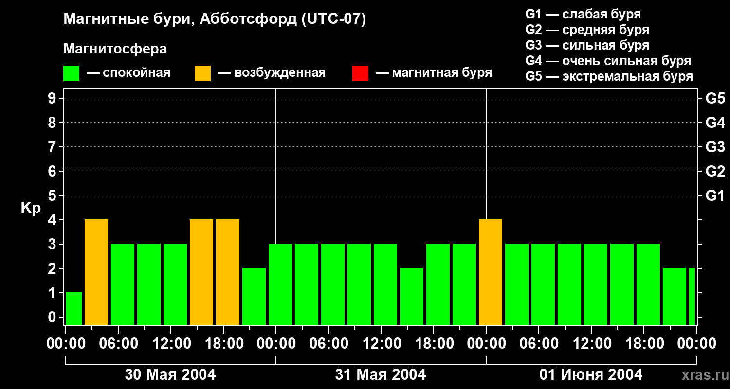 Магнитные бури в Абботсфорде — 1 июня 2004 года