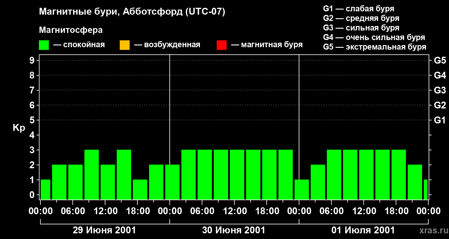 Магнитные бури в Абботсфорде 1 июля 2001 года