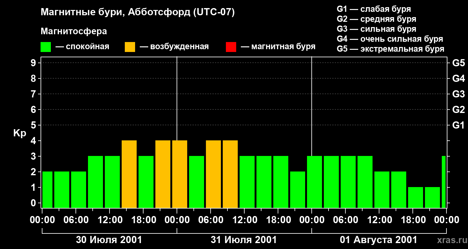 Магнитные бури в Абботсфорде 1 августа 2001 года