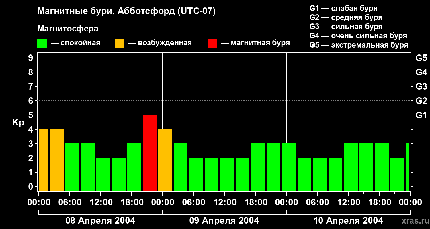 Магнитные бури в Абботсфорде 10 апреля 2004 года