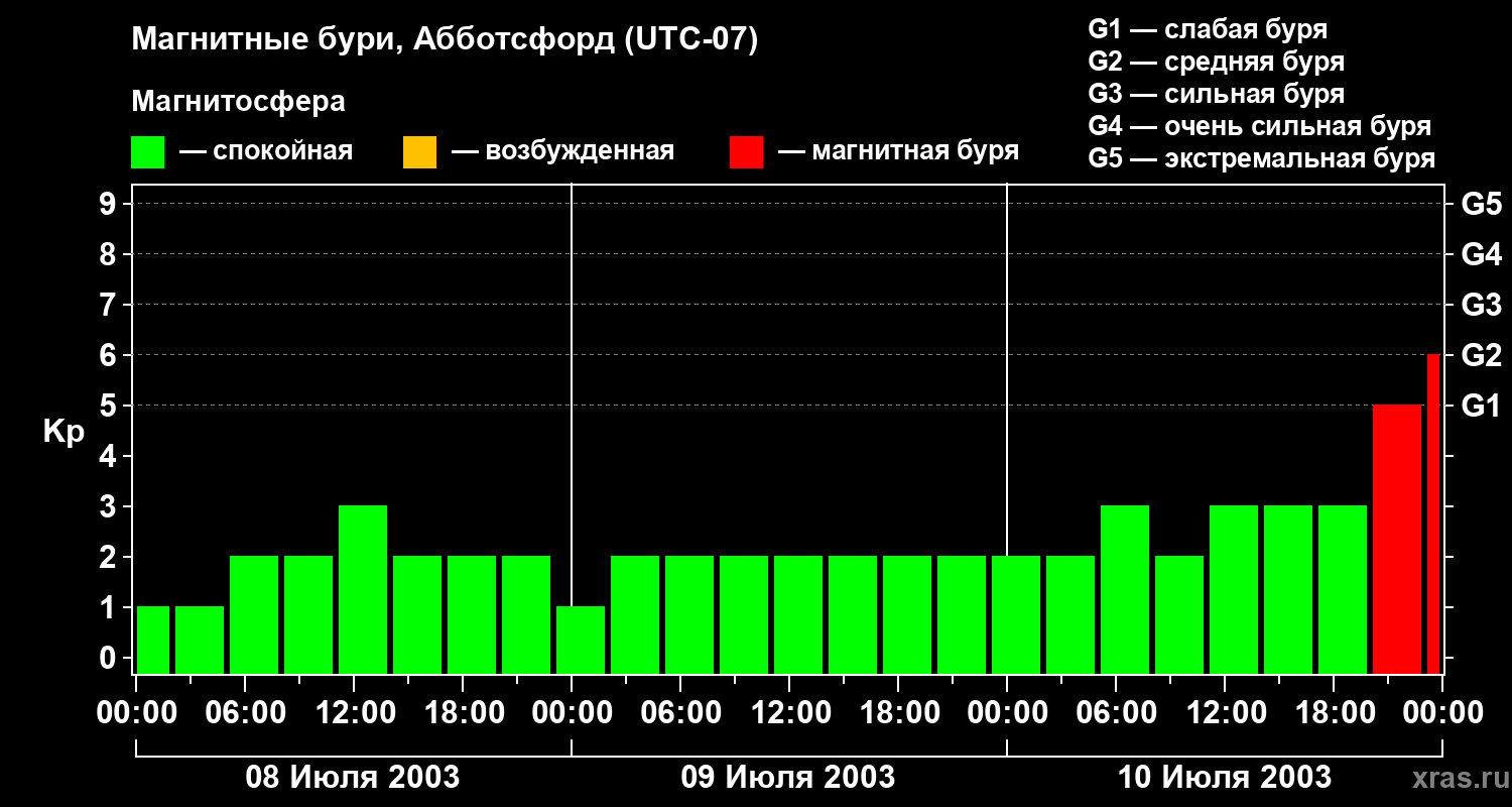 Магнитные бури в Абботсфорде — 10 июля 2003 года