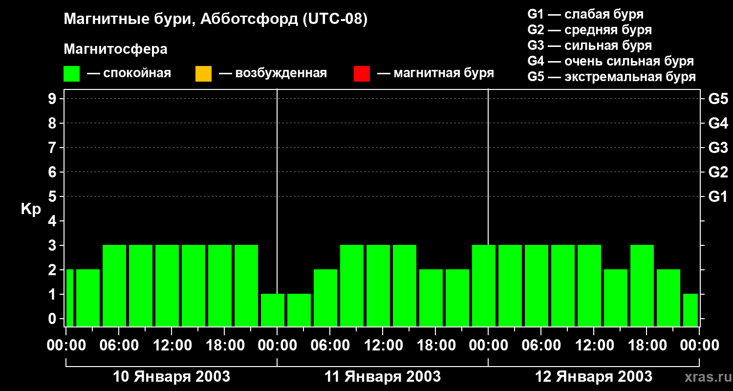 Магнитные бури в Абботсфорде — 12 января 2003 года