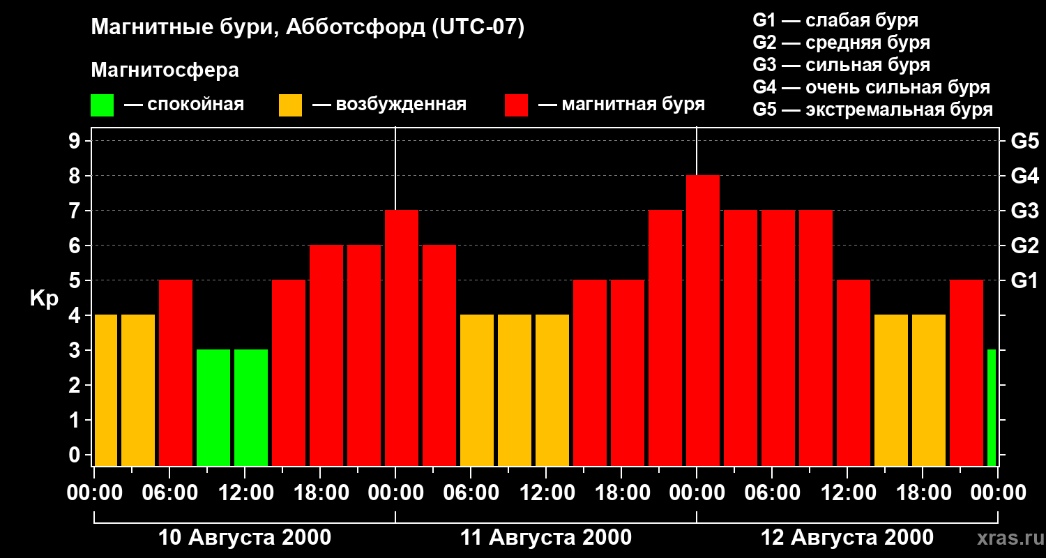 Магнитные бури в Абботсфорде 12 августа 2000 года