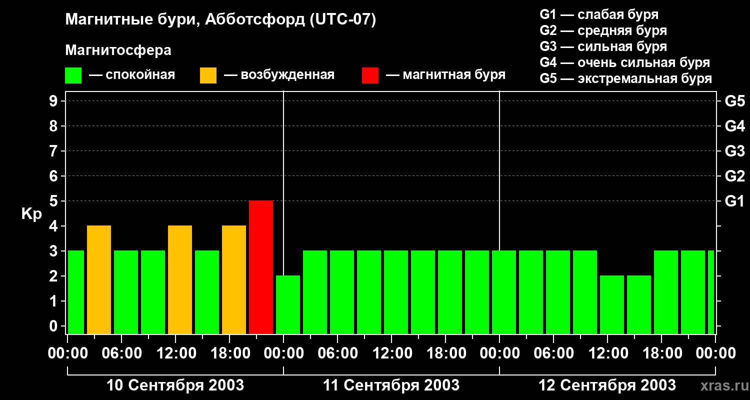 Магнитные бури в Абботсфорде — 12 сентября 2003 года