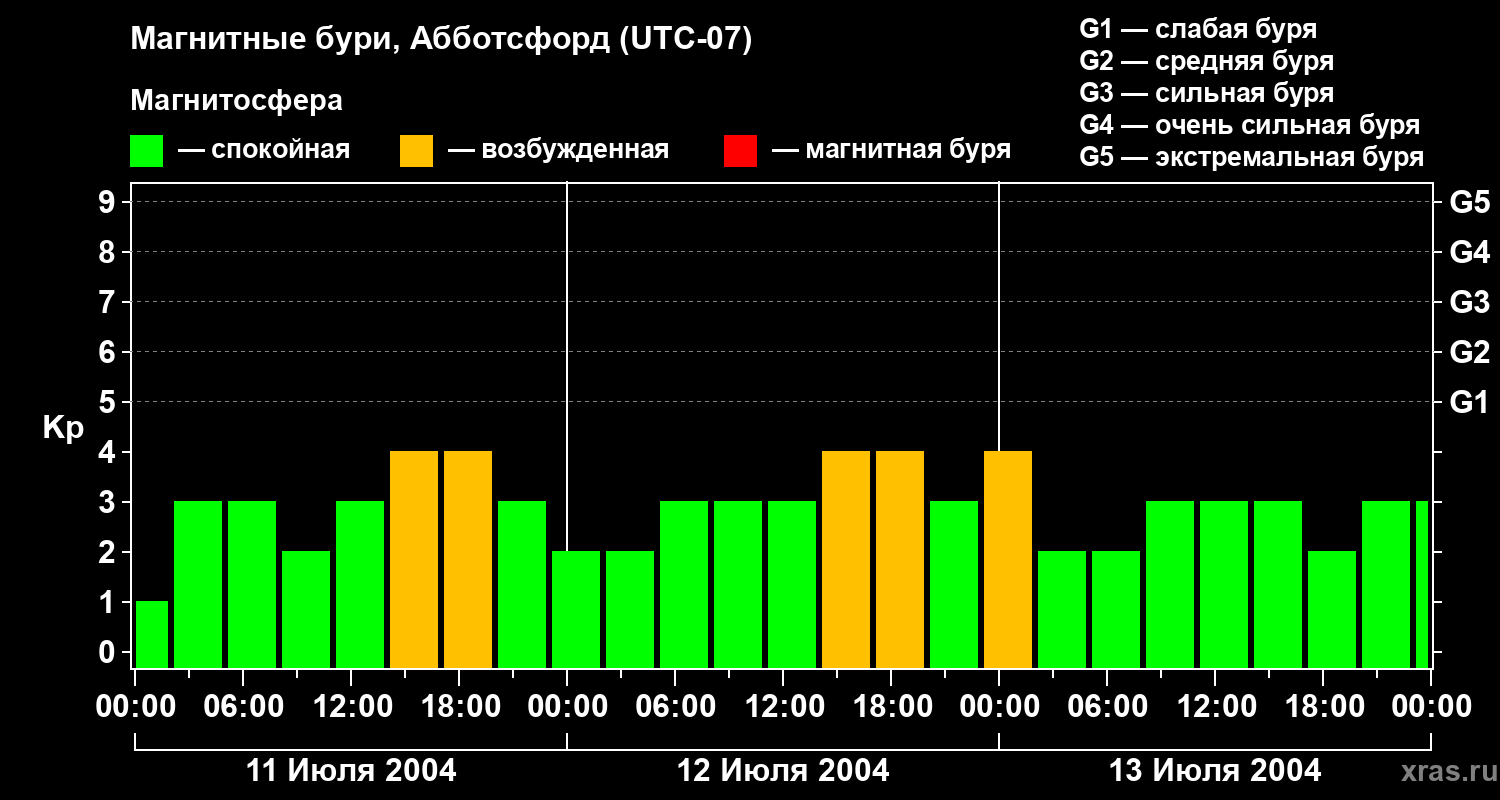 Магнитные бури в Абботсфорде 13 июля 2004 года